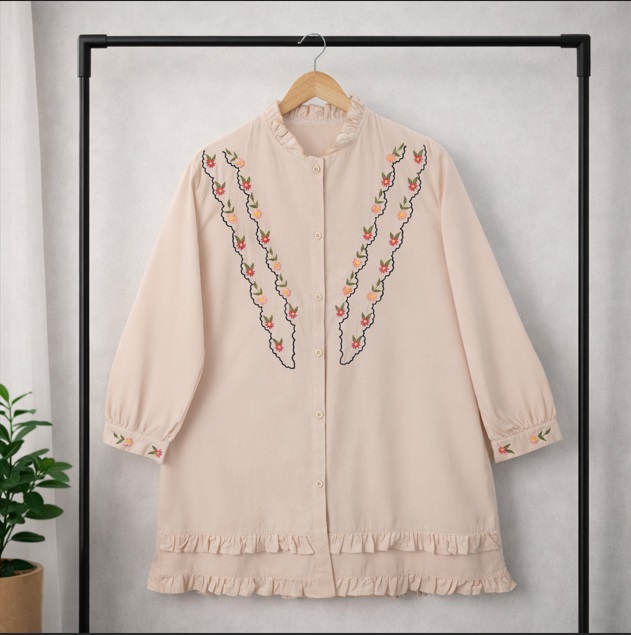 فری سایز(مناسب سایز46~36) قد 85، قد آستین 60، دورسینه 116